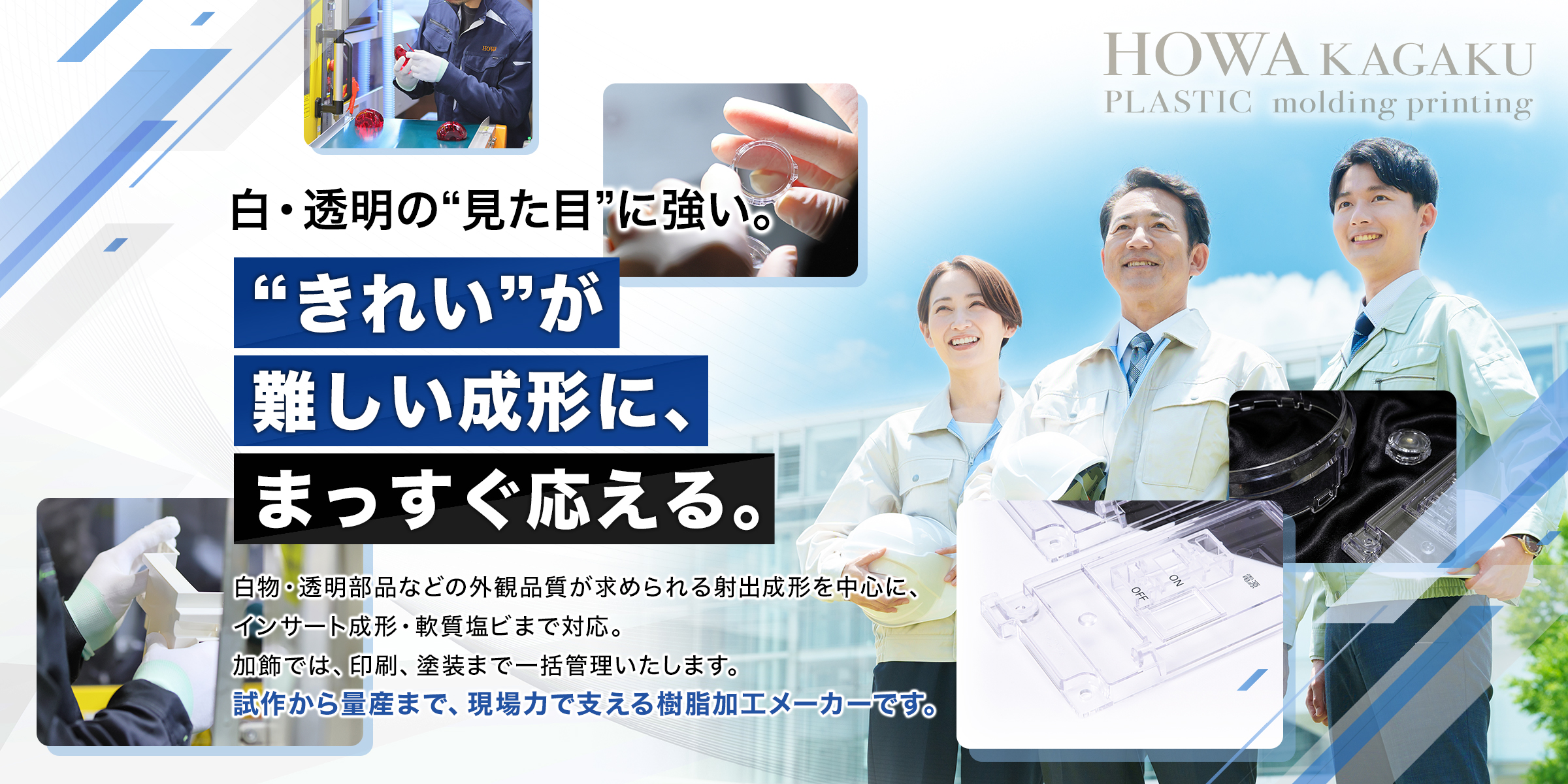 白物・透明部品の外観品質で高い評価をいただいています
